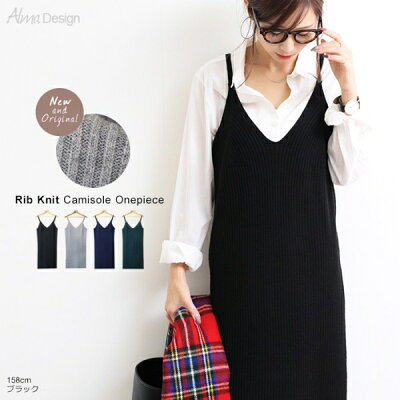 リブ ニット キャミ ワンピース キャミソール ワンピ ヒザ丈 ロング [キャンセル・変更・返品不可]